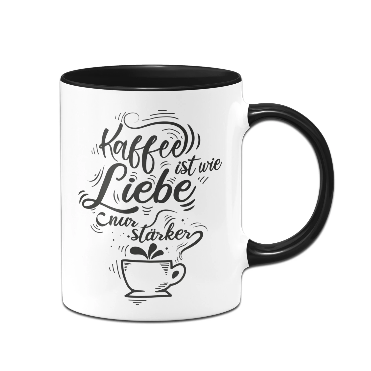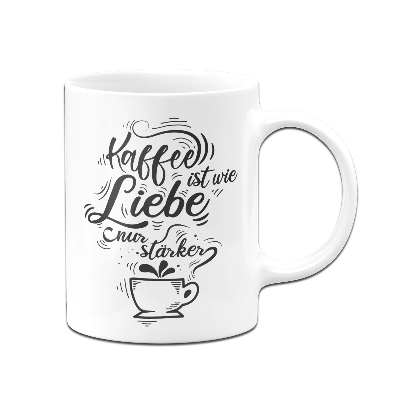 Tasse mit Spruch: Kaffee ist wie Liebe nur stärker. ☕