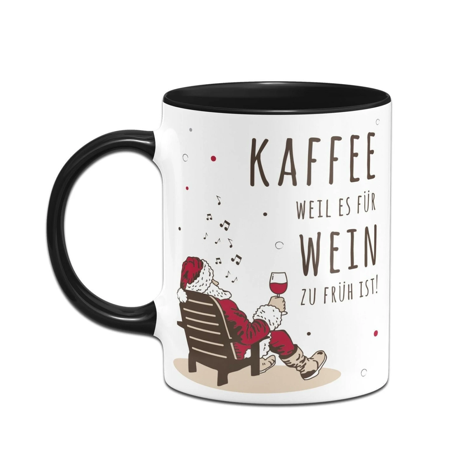 Tasse mit Spruch: Kaffee, weil es für Wein zu früh ist! ☕🍷 Weihnachtsedition 🎅🏻