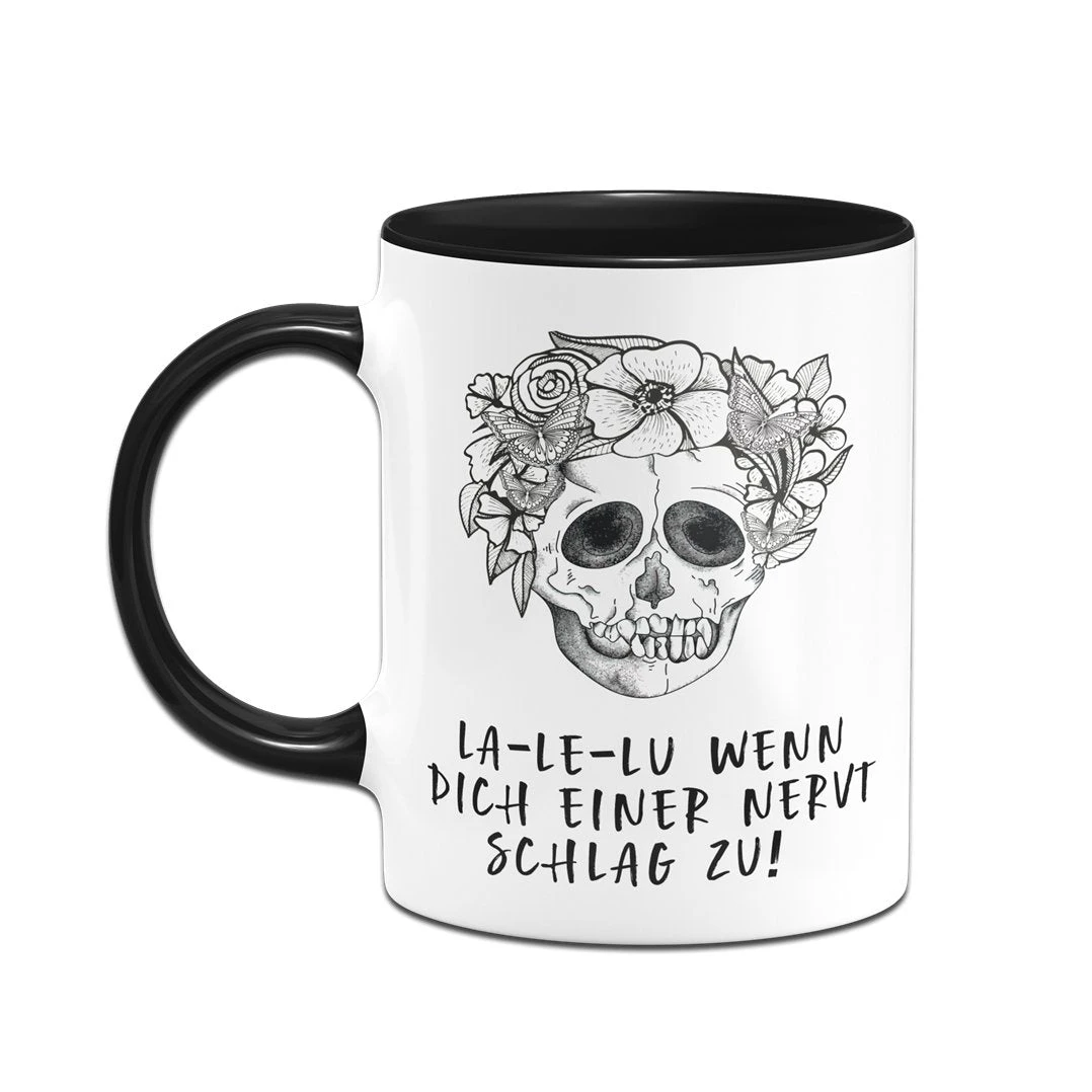 Totenkopf 💀 Tasse mit Spruch: La-Le-Lu Wenn dich einer nervt schlag zu! 💀
