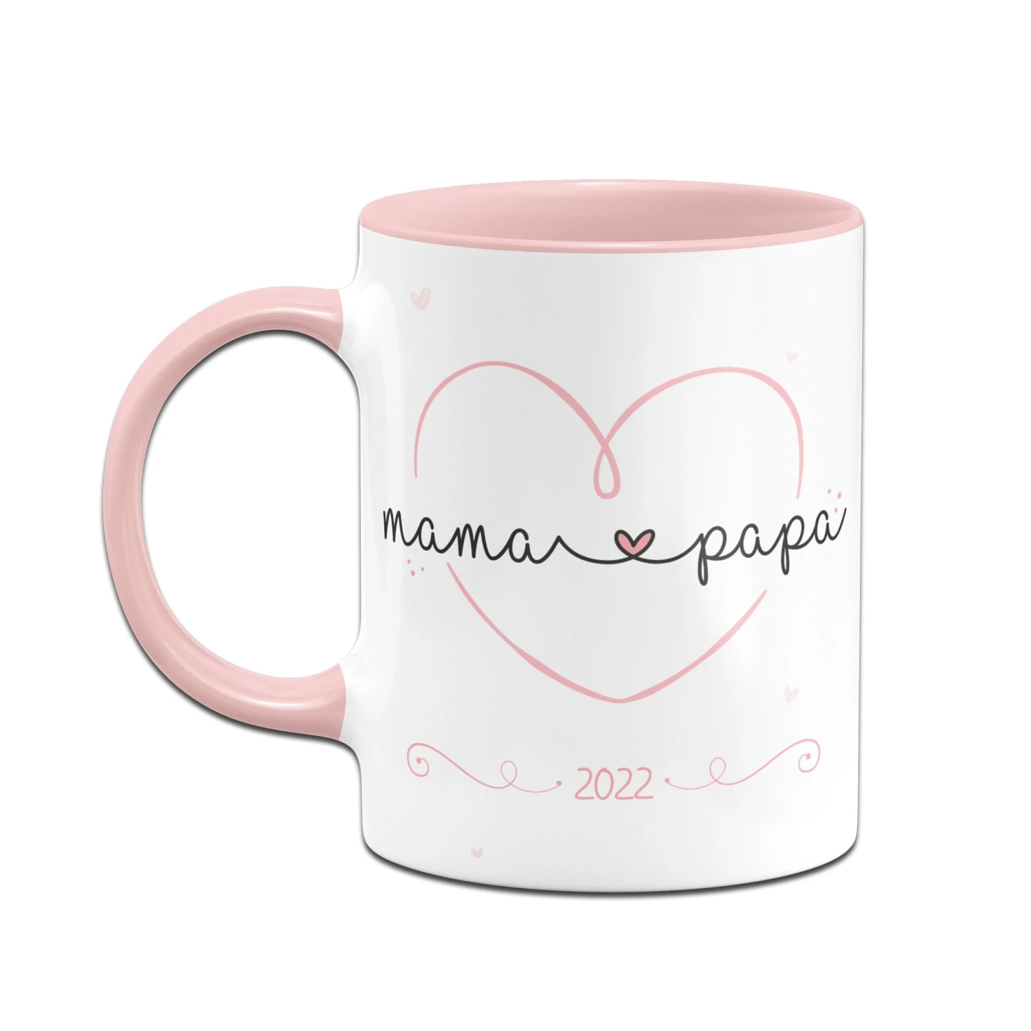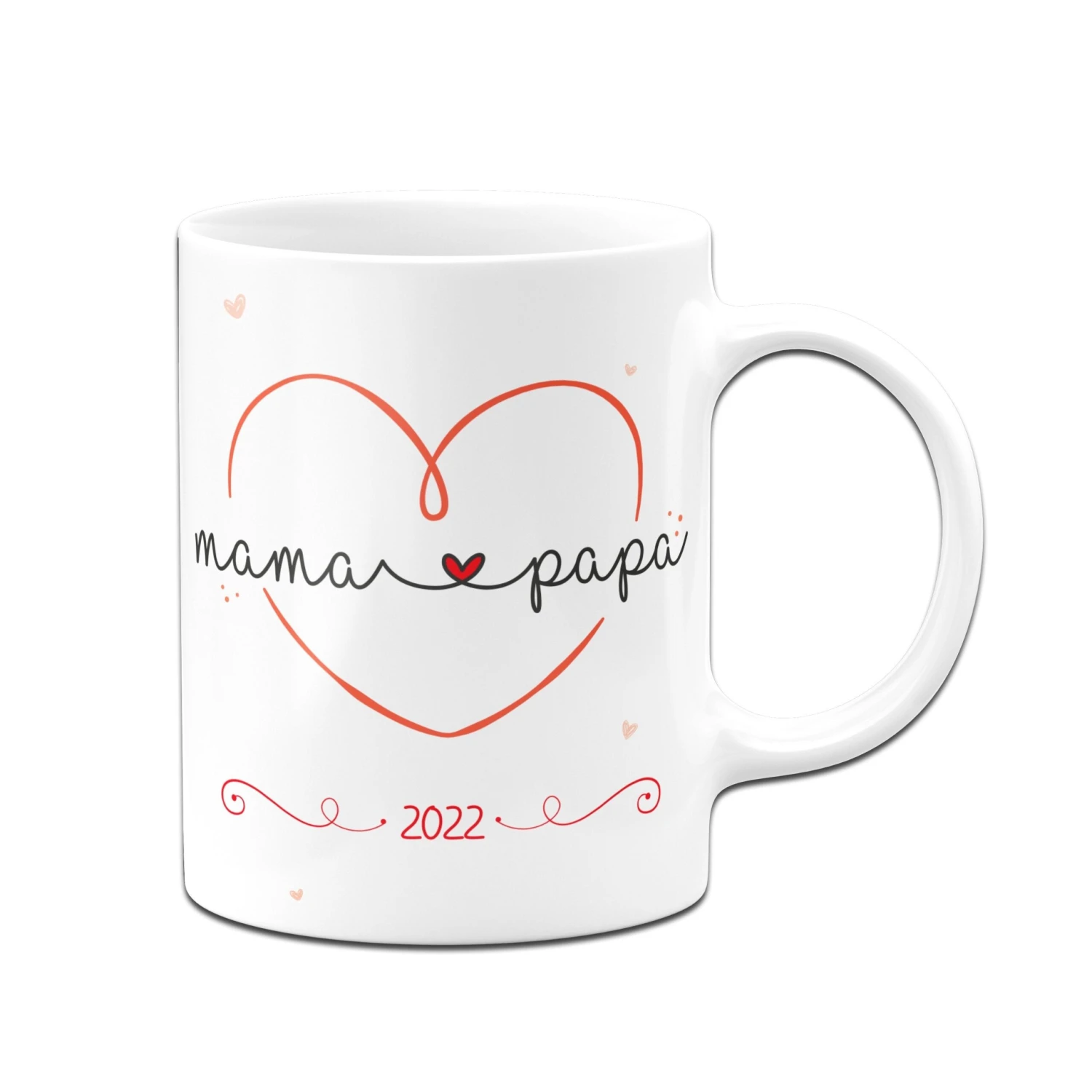 Tasse mit Spruch: Mama ❤️ Papa 2022 für alle werdenden Eltern, die 2022 ihr Baby bekommen.