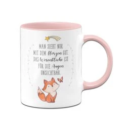 Tasse mit Spruch: Man sieht nur mit dem Herzen gut. Das Wesentliche ist für die Augen unsichtbar. 🦊🦋