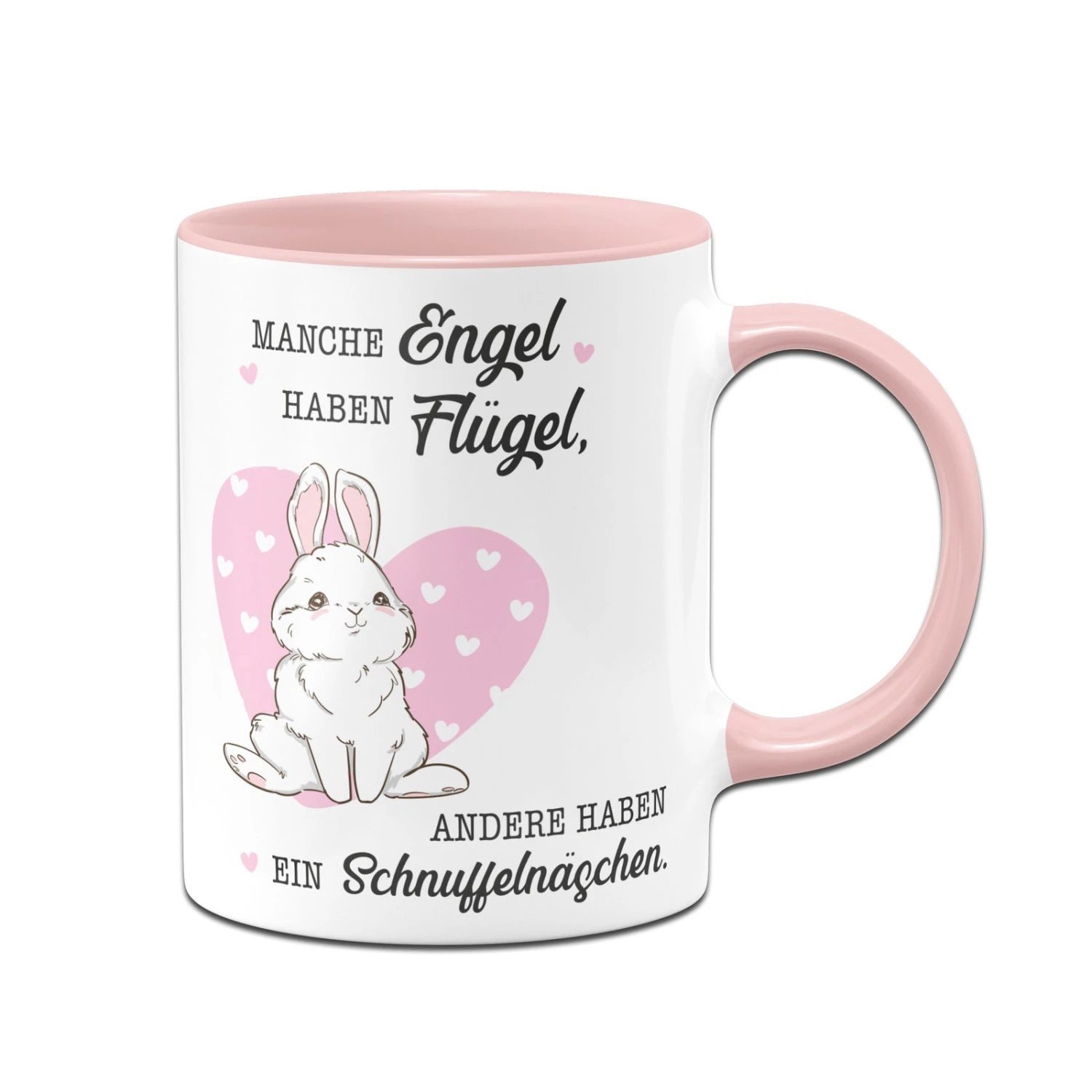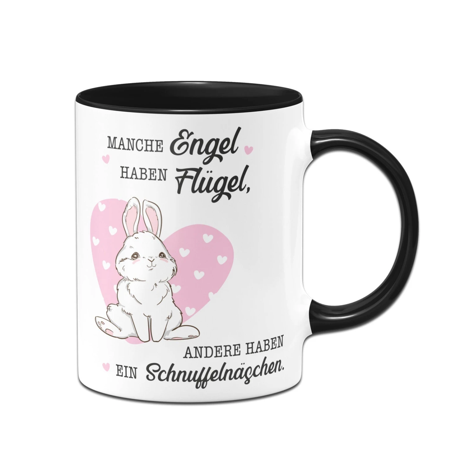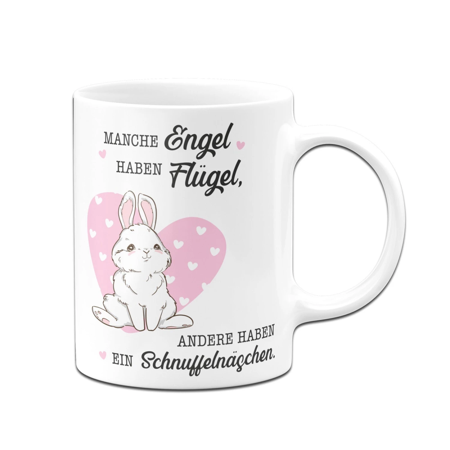 Kaninchentasse mit Spruch: Manche Engel haben Flügel, andere haben ein Schnuffelnäschen. 🐰