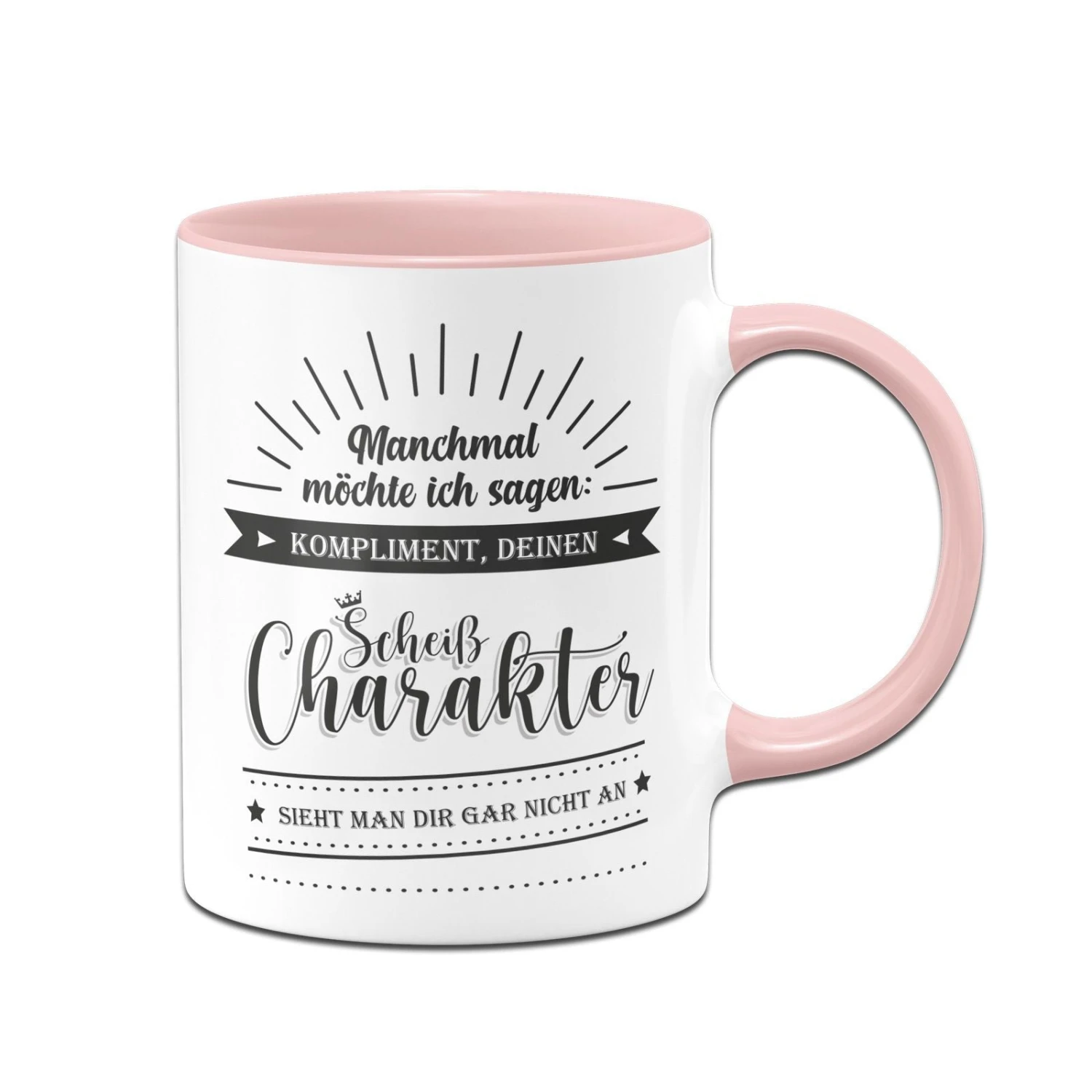 Tasse mit Spruch: Manchmal möchte ich sagen: Kompliment, deinen scheiß Charakter sieht man dir gar nicht an. ⭐