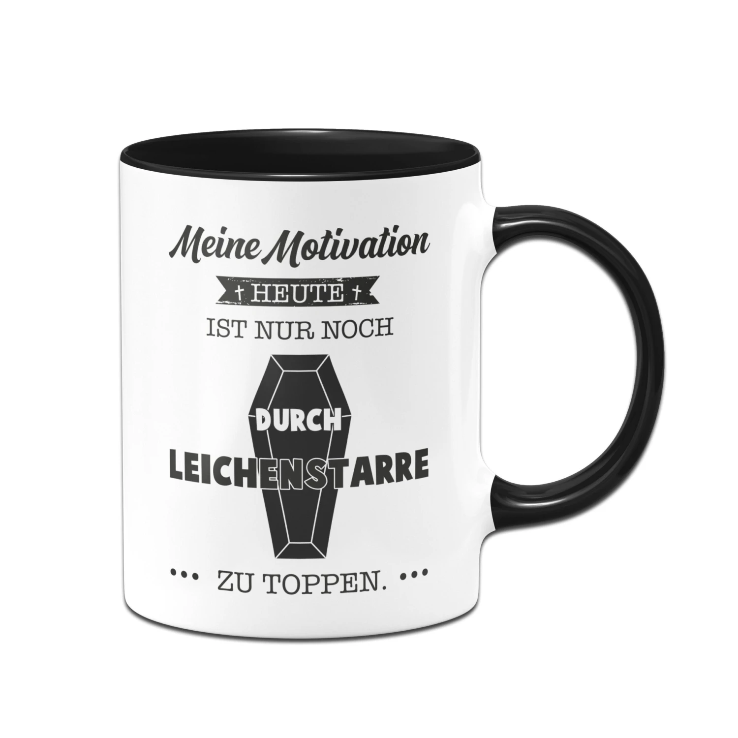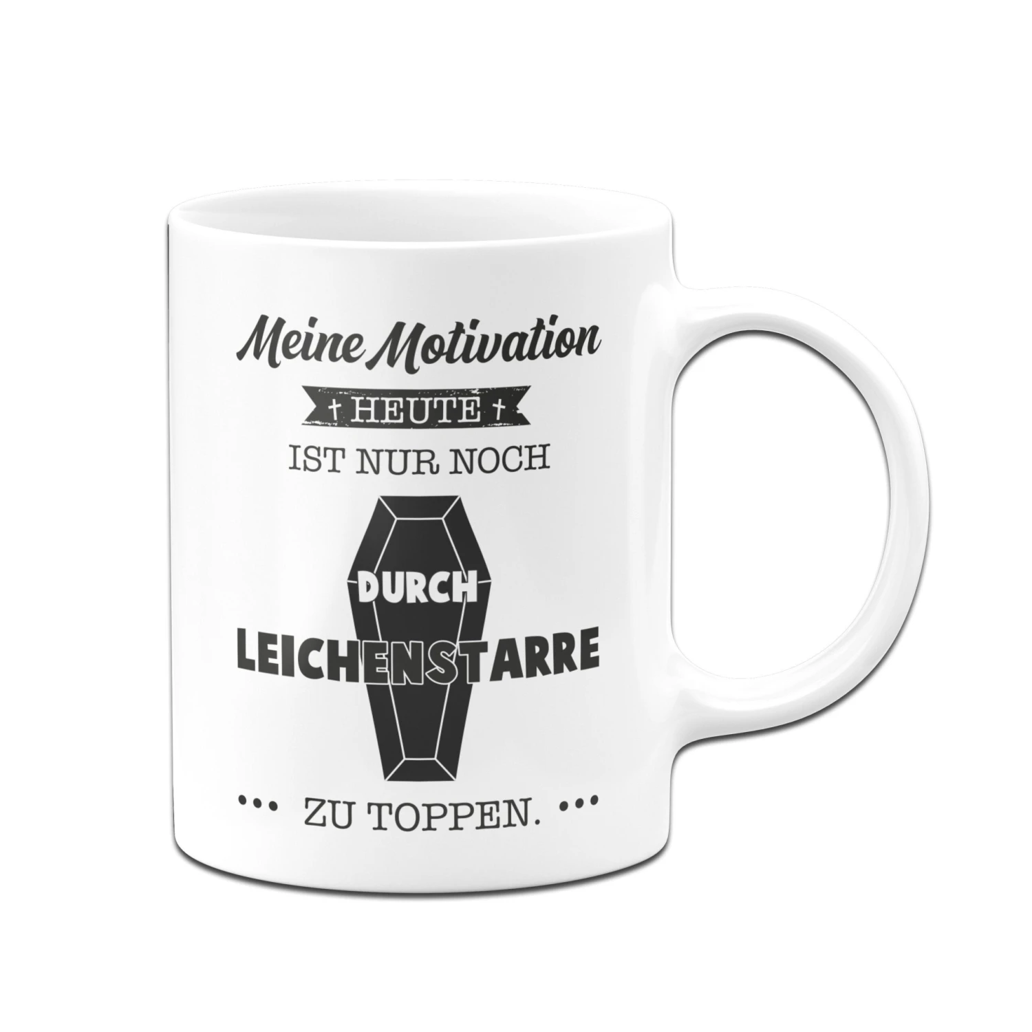 Tasse mit Spruch: Meine Motivation heute ist nur noch durch Leichenstarre zu toppen. ⚰️