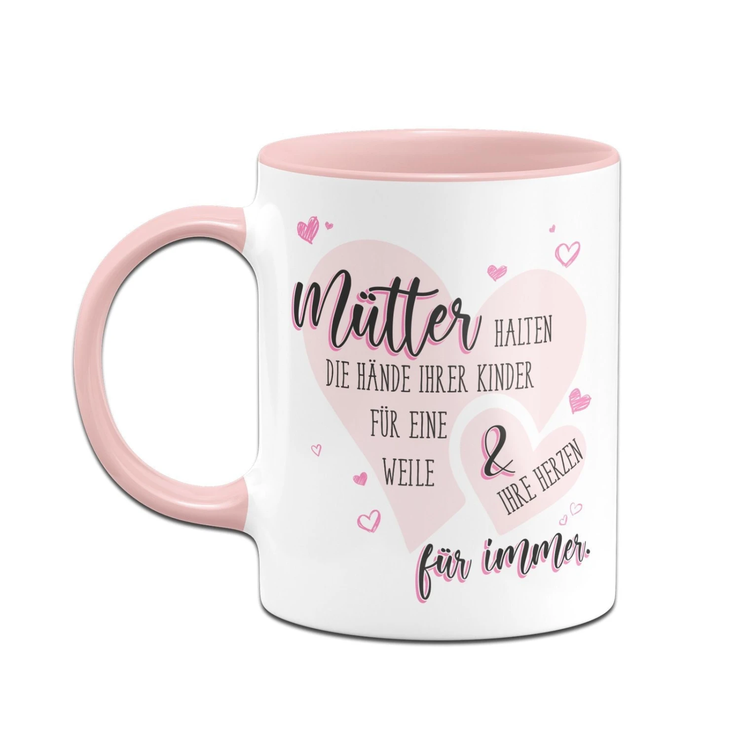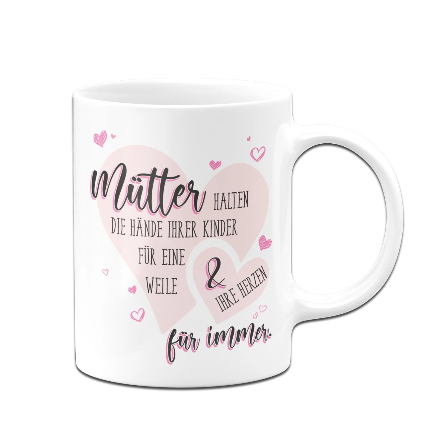 Tasse mit Spruch: Mütter halten die Hände ihrer Kinder für eine Weile & ihre Herzen für immer 💕