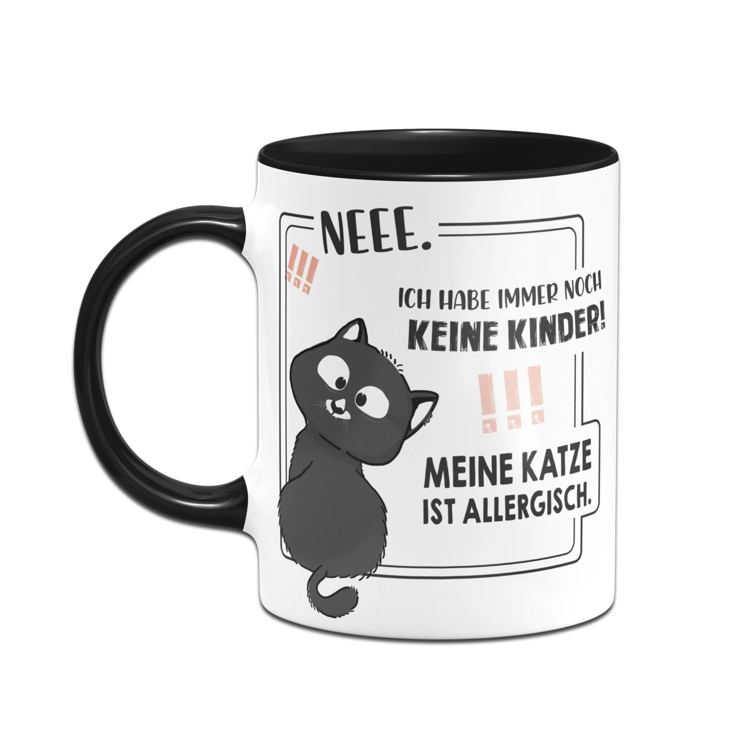 Katzen Tasse mit Spruch: Neee. Ich habe immer noch keine Kinder! Meine Katze ist allergisch. 🐱