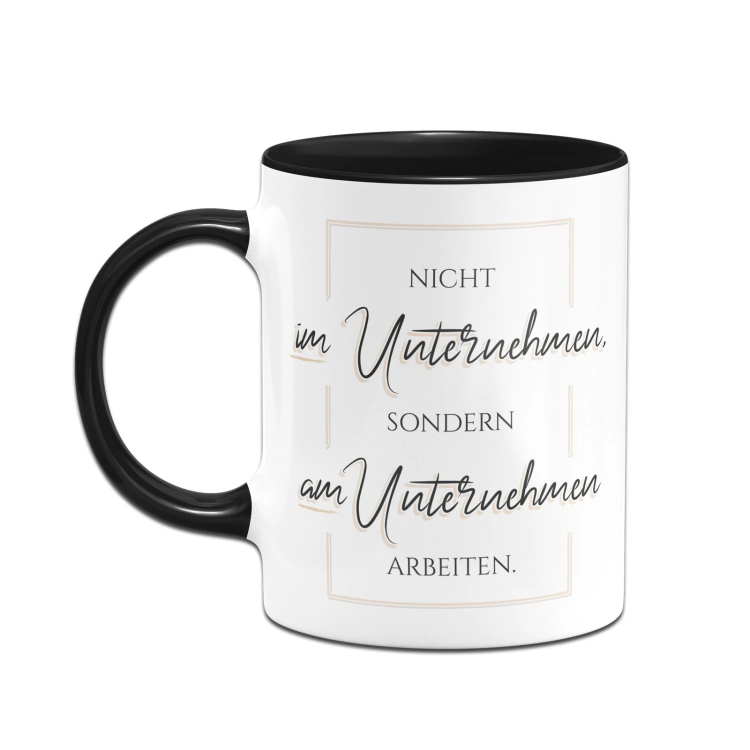 Tasse mit Spruch: Nicht im Unternehmen sondern am Unternehmen arbeiten.