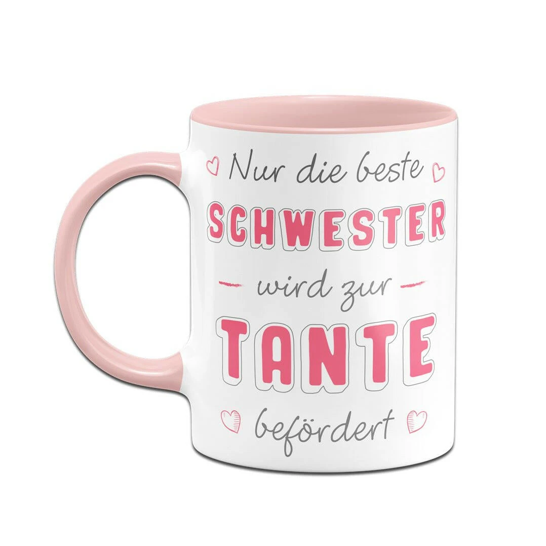 Tasse mit Spruch: Nur die beste Schwester wird zur Tante befördert 🤍