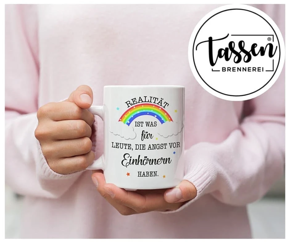 Tasse mit Spruch: Realität ist was für Leute, die Angst vor Einhörnern haben. 🦄