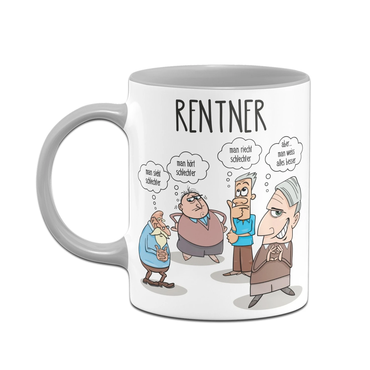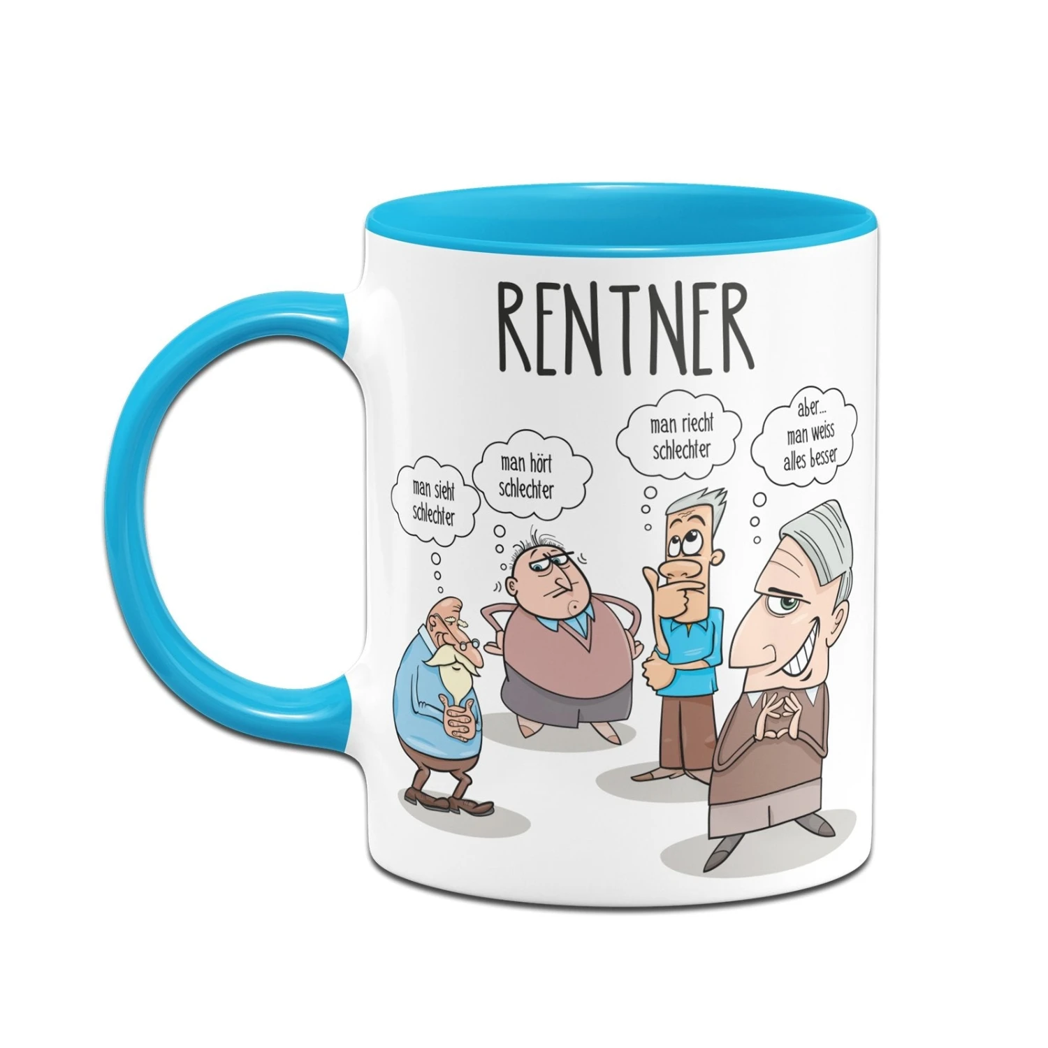 Tasse mit Spruch: Rentner = man sieht schlechter – man hört schlechter – man riecht schlechter – aber… man weiss alles besser 👨🦳👴