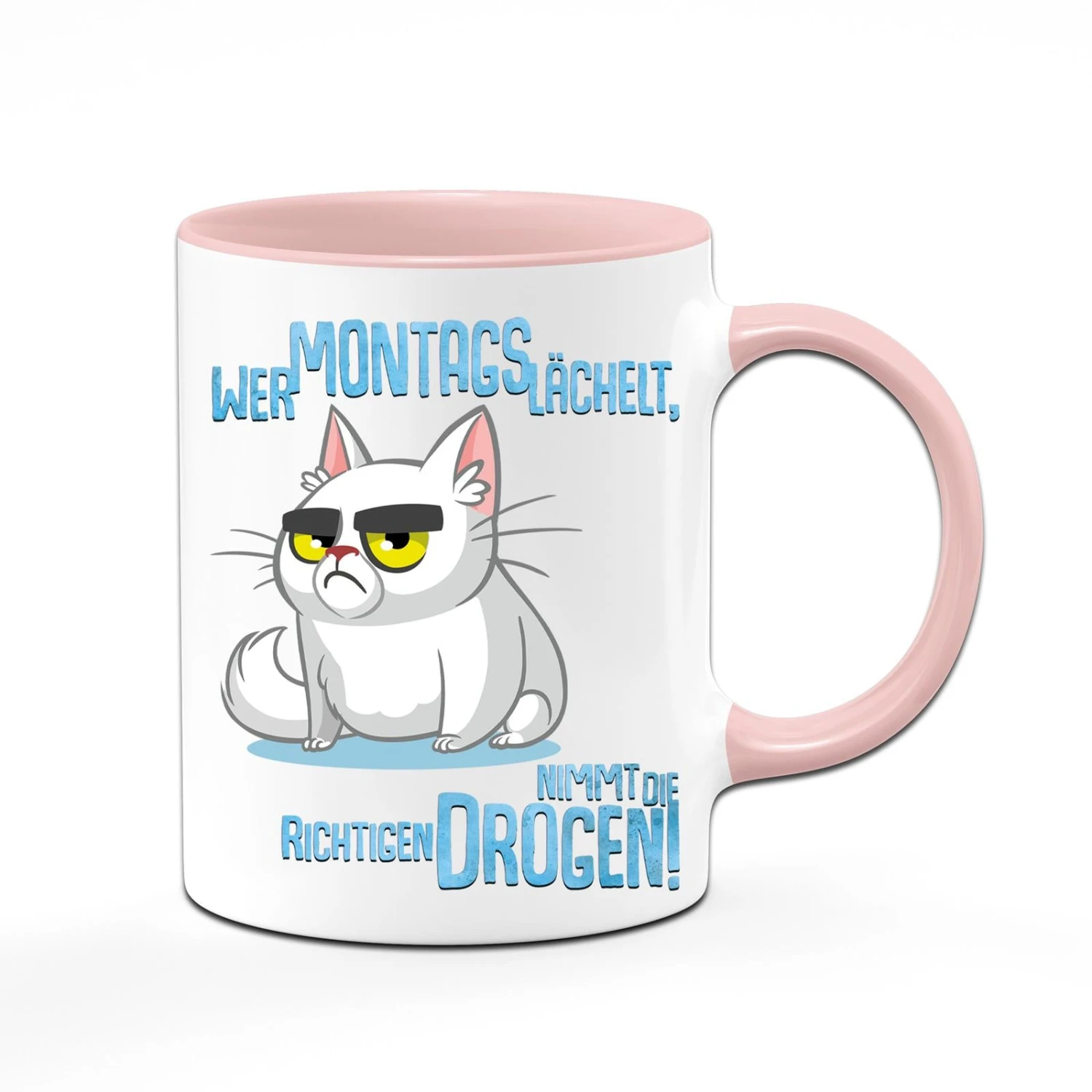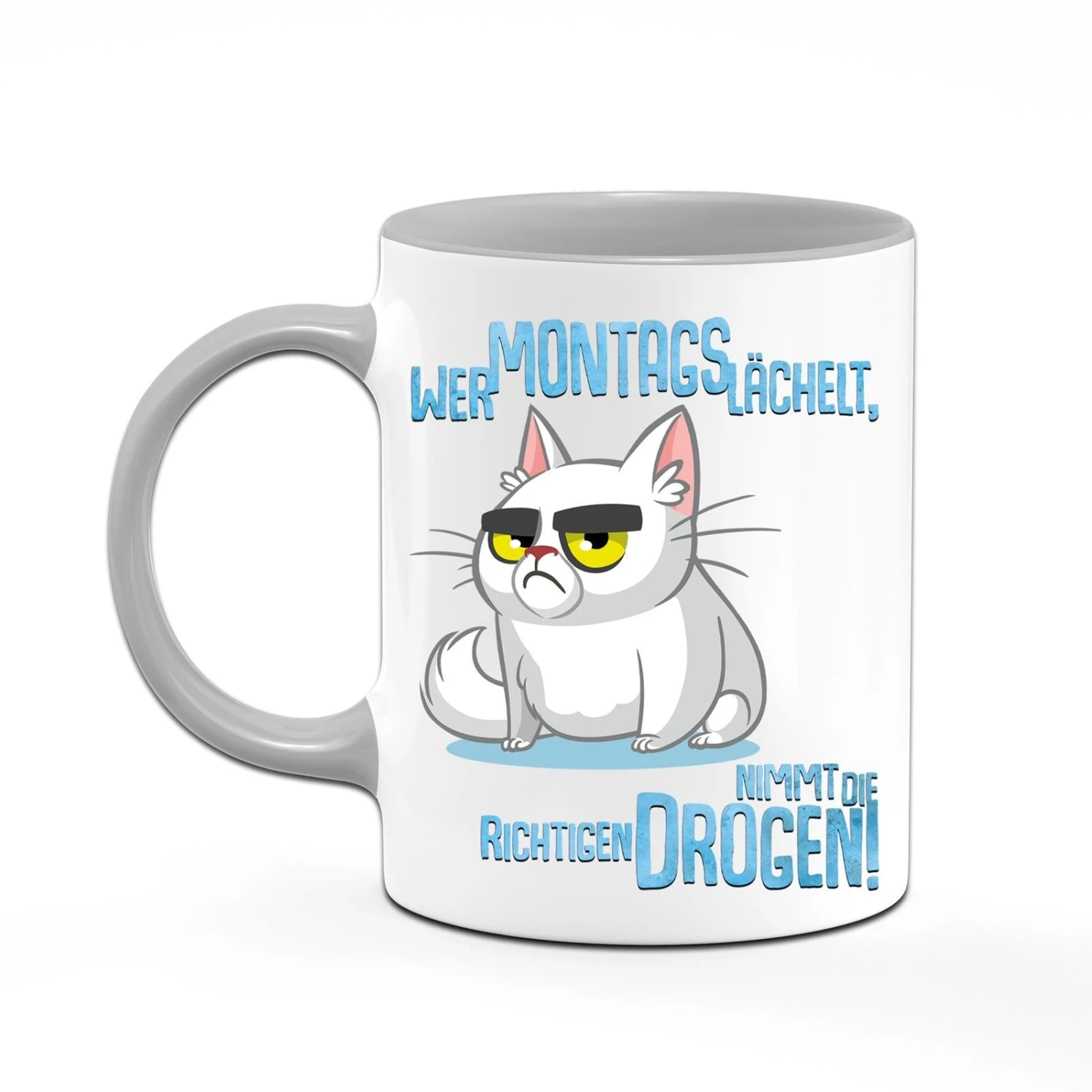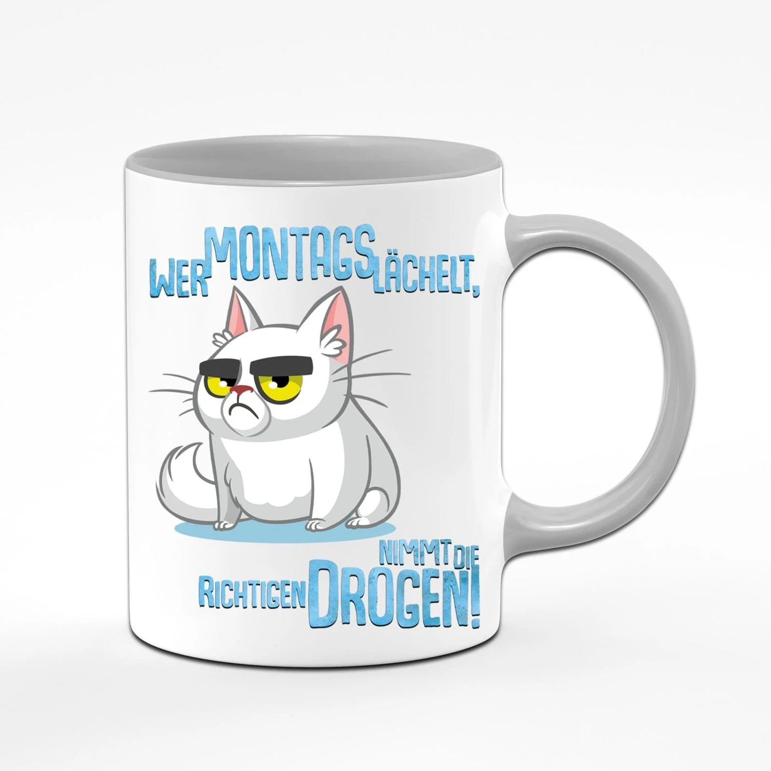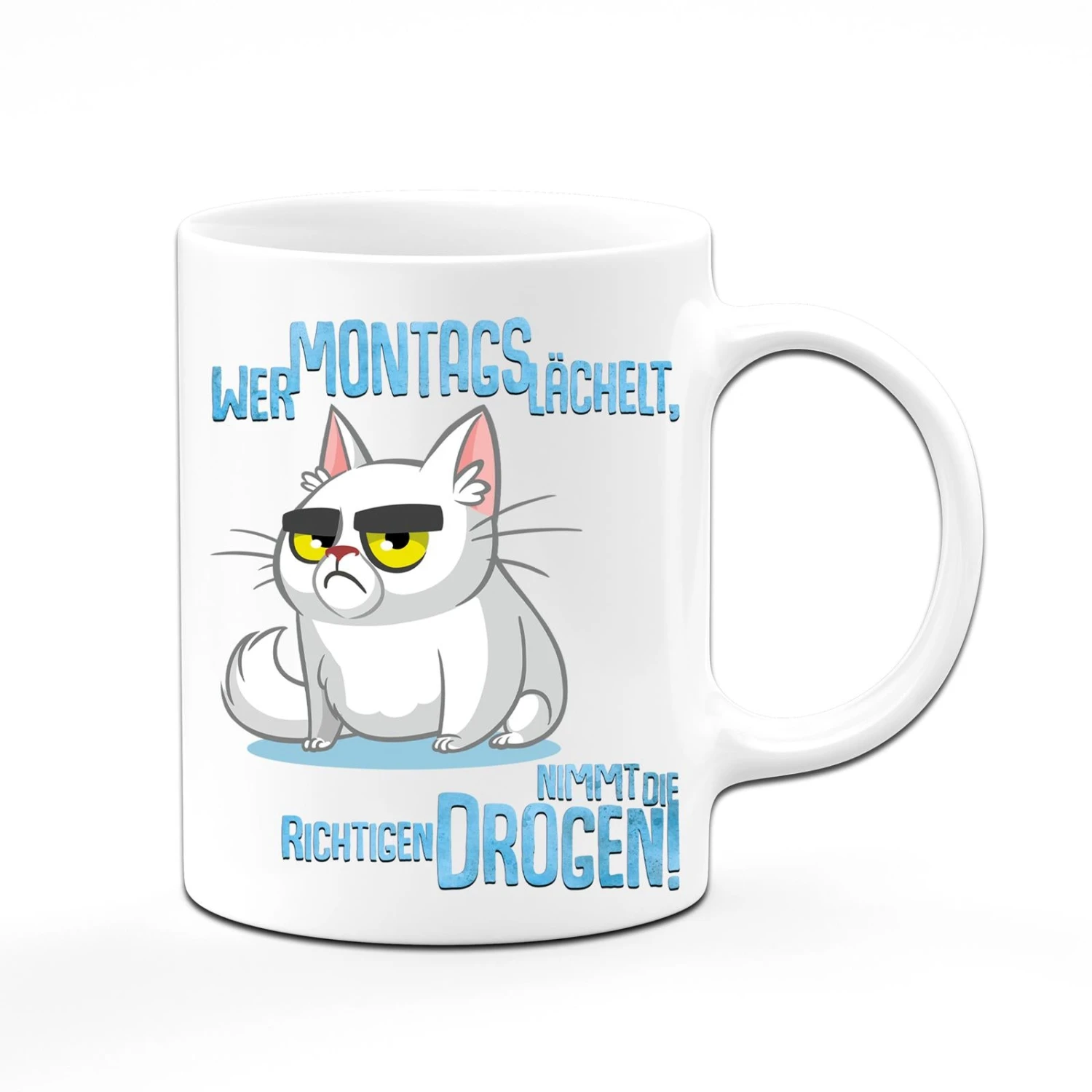Tasse mit Spruch: Wer Montags lächelt, nimmt die richtigen Drogen! 😼