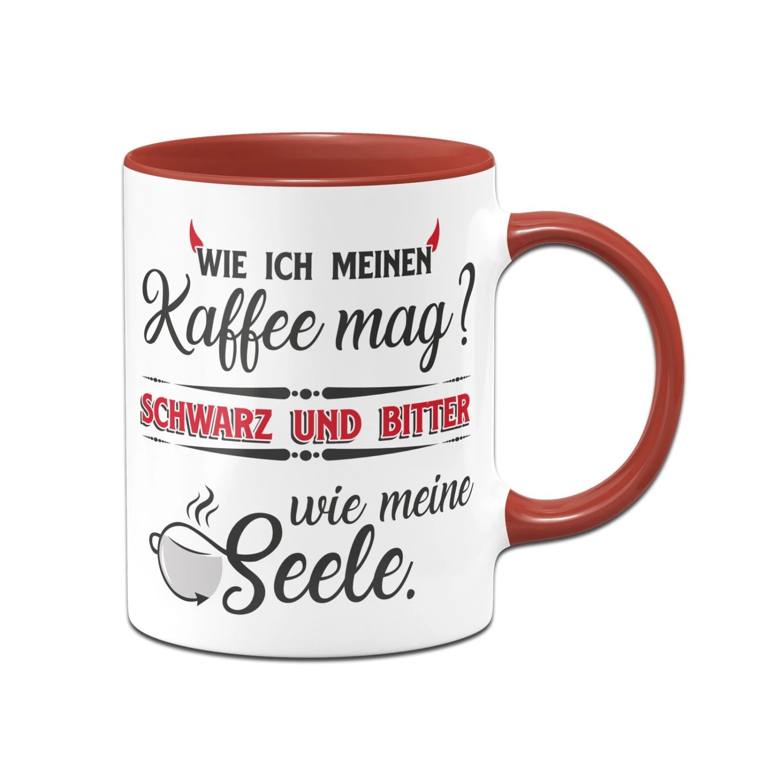 Tasse mit Spruch: Wie ich meinen Kaffee mag? Schwarz und bitter wie meine Seele. ☕