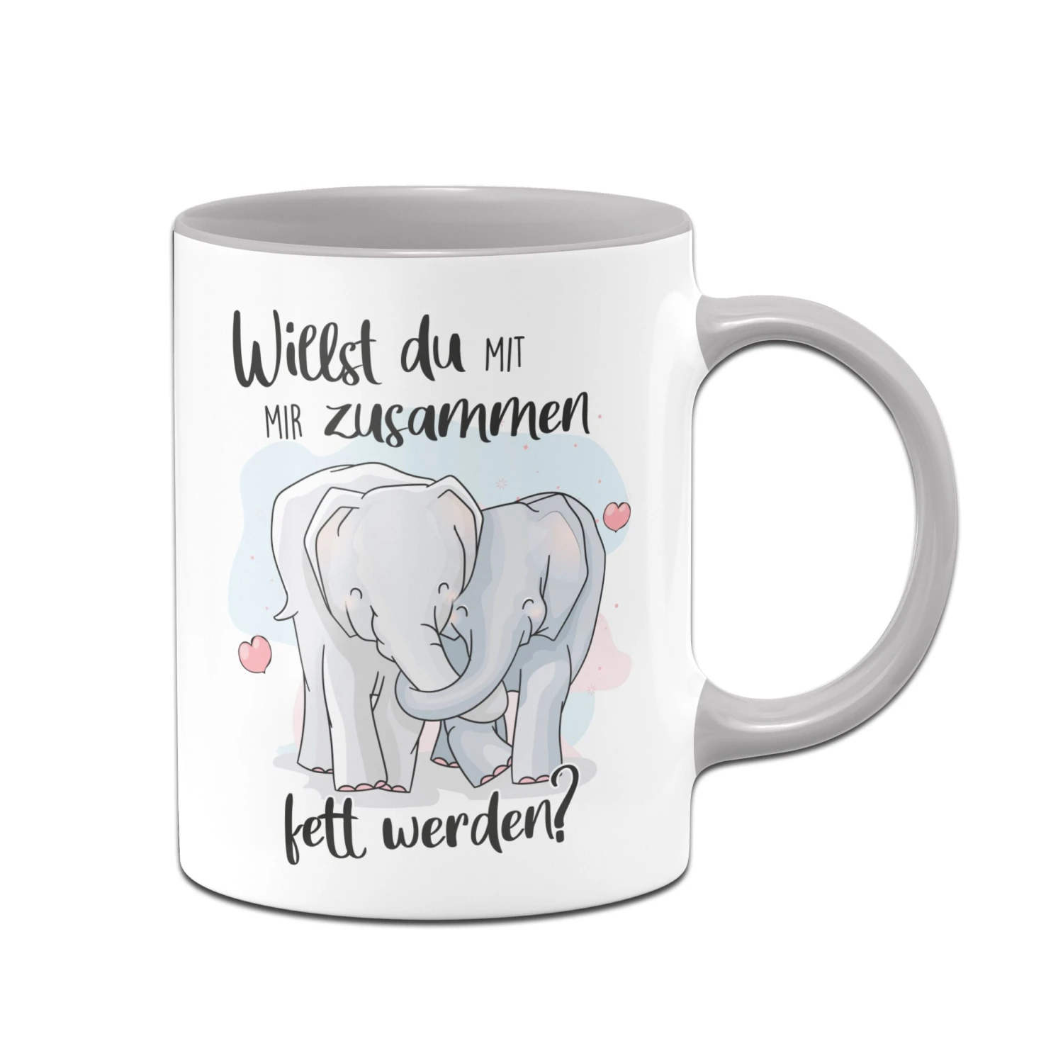 Tasse mit Spruch: Willst du mit mir zusammen fett werden? 🐘