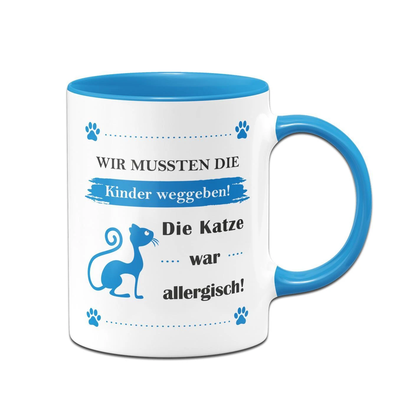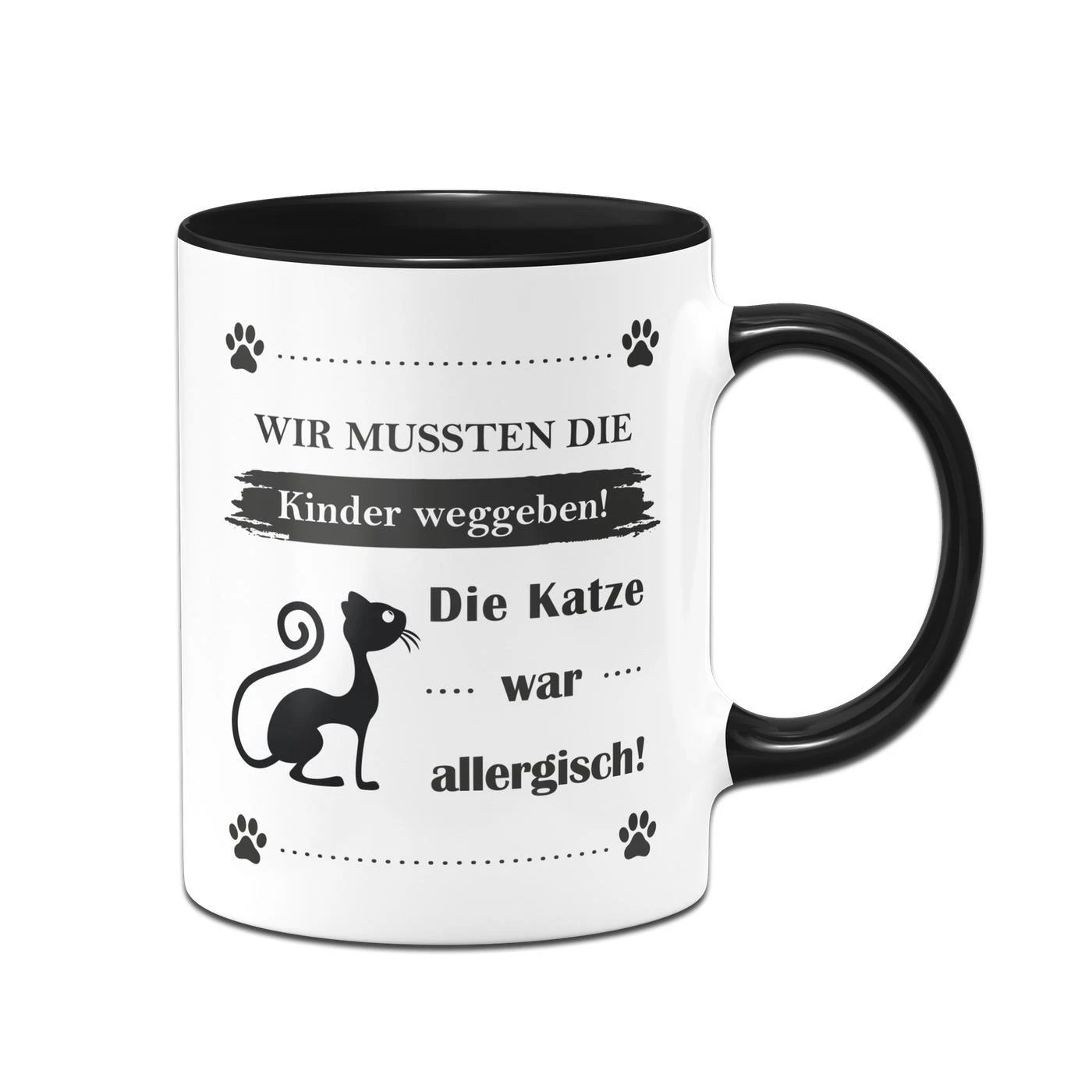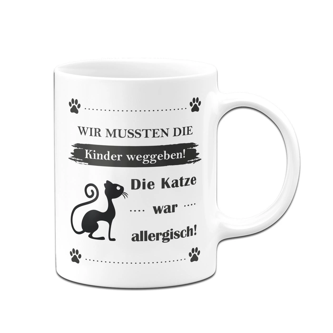 Katzen Tasse mit Spruch: Wir mussten die Kinder weggeben! Die Katze war allergisch! 🐈