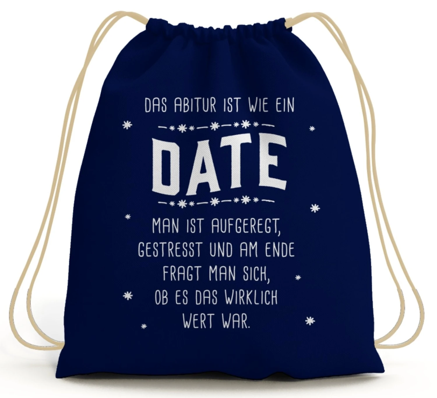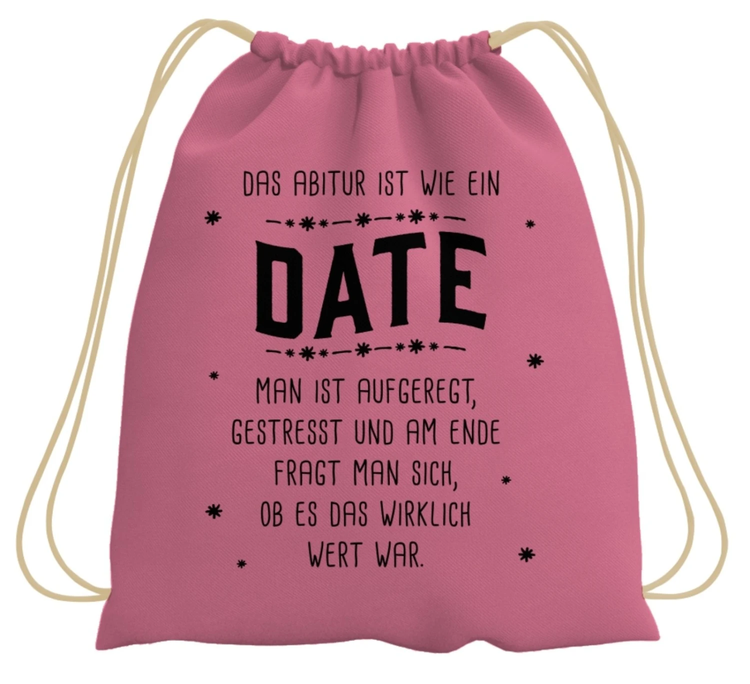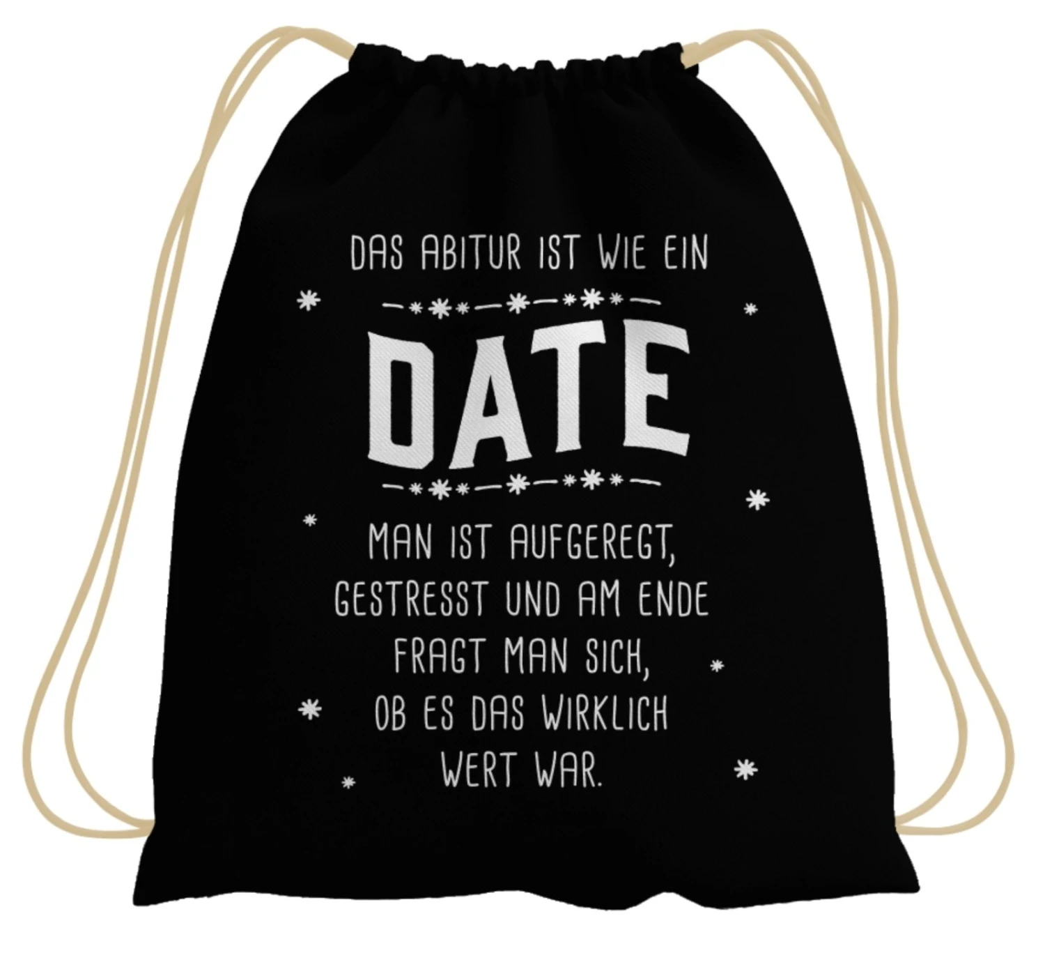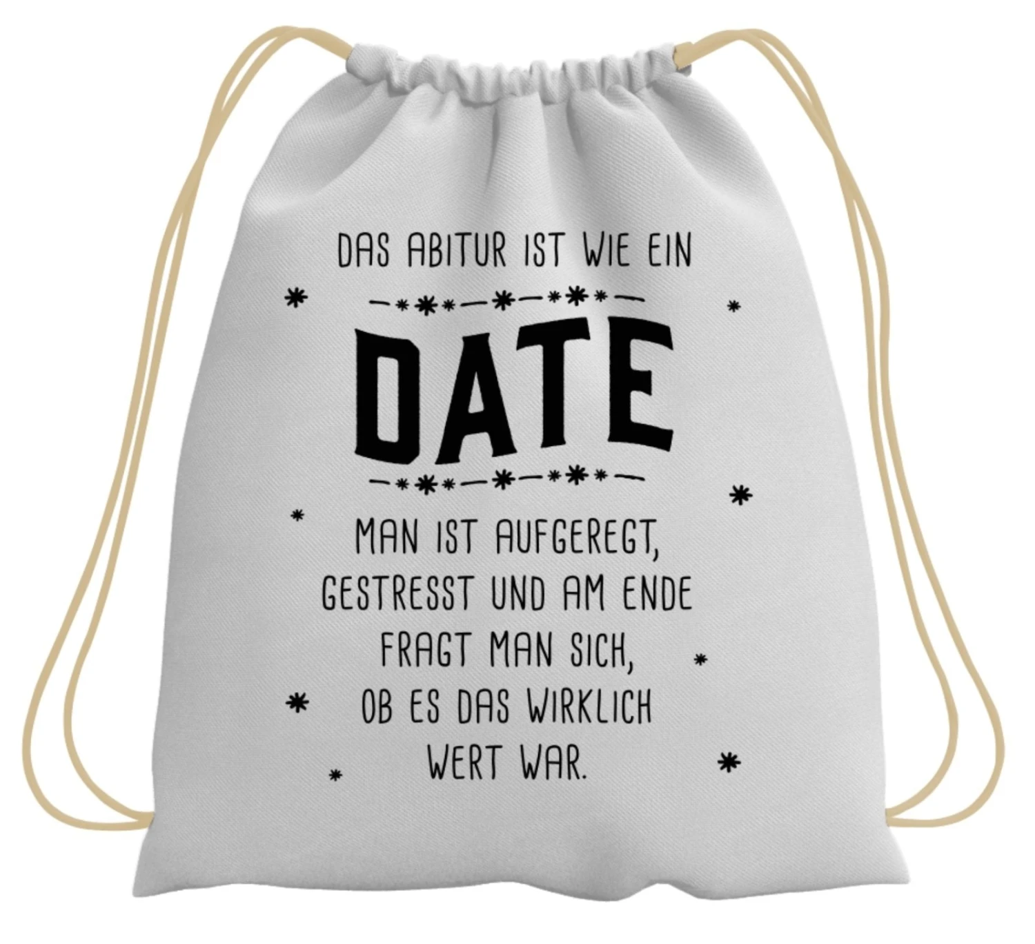 Turnbeutel – Rucksack mit Spruch: Das Abitur ist wie ein Date 🌟 Man ist aufgeregt, gestresst und am Ende fragt man sich, ob es das wirklich wert war.